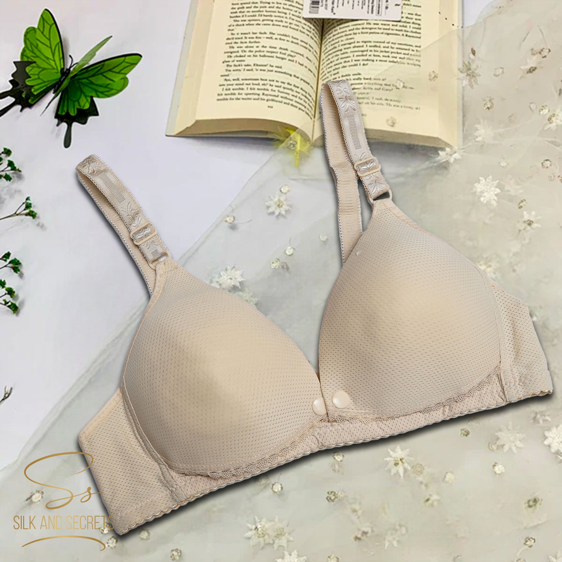 Front Open Single Button Padded Non-Wired Comfort Bra