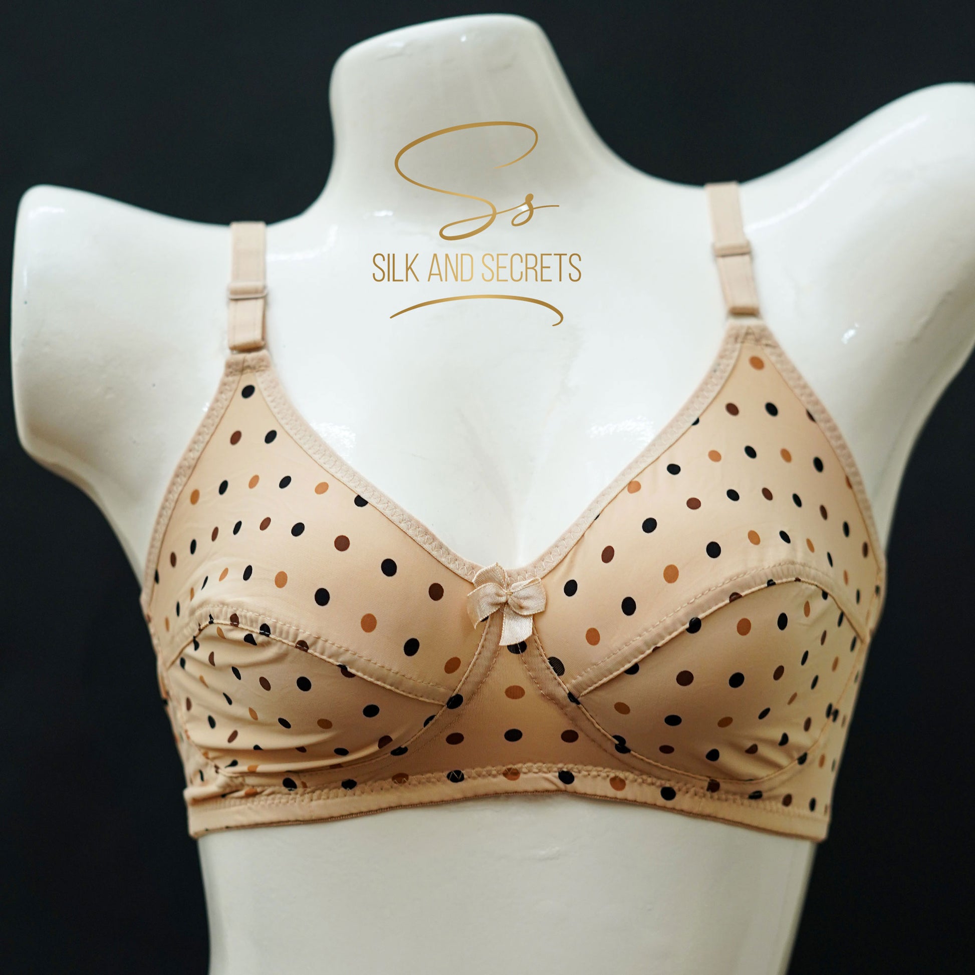 The Malai Jersey Dotted Non-Wired Everyday Comfort Bra is designed to eliminate those frustrations and enhance your daily life with effortless comfort and charming style. Crafted from soft malai jersey fabric, this bra offers a breathable, stretchable fit that moves with you, ensuring you stay comfortable no matter the activity.